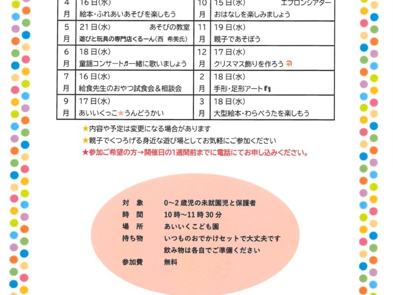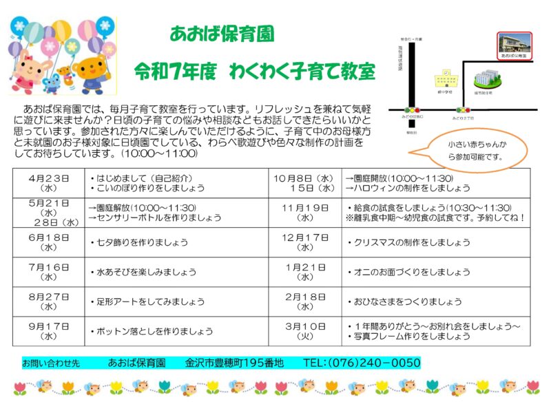 あゆみ保育園 求人情報 【見学・採用担当者】 園長 橋本(はしもと)恵子 新卒募集(新年度) ◯ 途中採用(正規) ◯ 途中採用(パート) ◯ 見学の受け入れ ◯ 実習生の受け入れ ◯ ボランティアの受け入れ ◯ 学生バ …